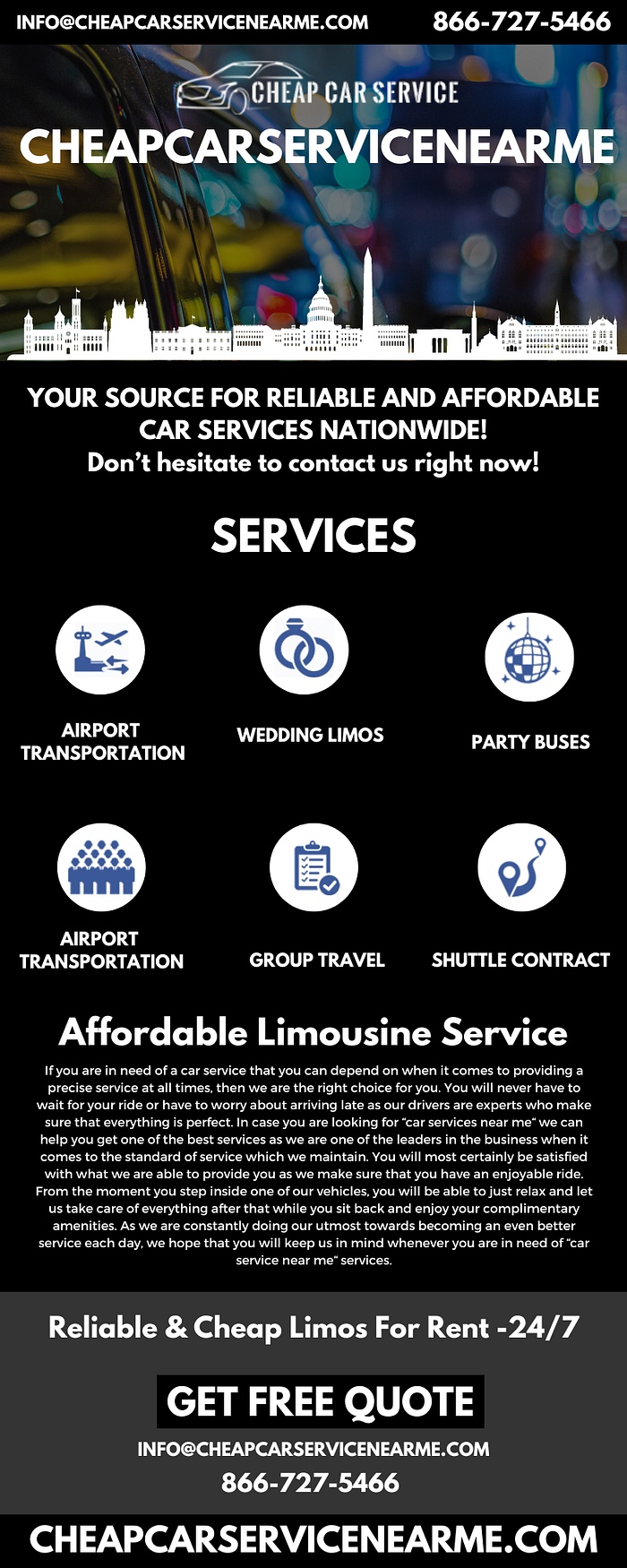 Cheap Car Service Near Me for New Year — Looking for a reliable luxury transportation provider for your company’s New Year Party. Our transportation services are well organized and professional. We take pride in our modern fleet of vehicles, capable of safely transporting any size groups. We’d be delighted to chauffeur you and company staff to and from your New Year Party. Celebrate this holiday season with our Cheap Car Service Near Me Company. Our New Year car services can be customized to meet your special holiday event transportation needs. Visit http://cheapcarservicenearme.com/ or Call us Now at 866–727–5466